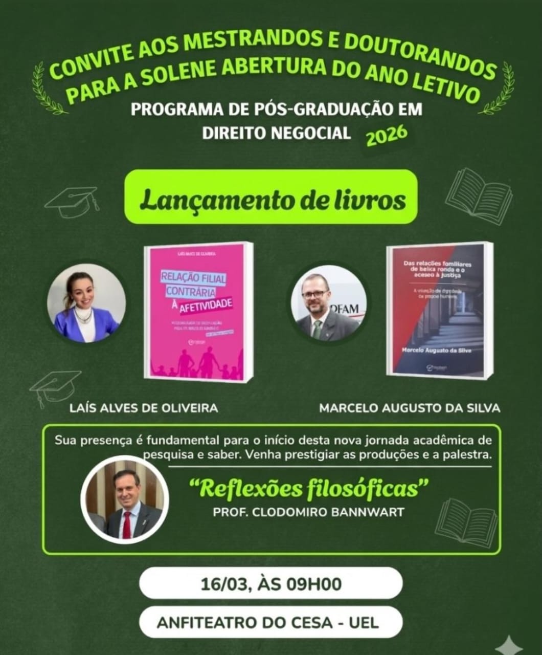 Tema: Convite aos Mestrandos e Doutorandos para a solene abertura do ano letivo.