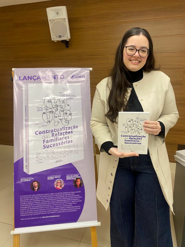 A palestra integrou-se a um momento especial: o pré-lançamento da obra coletiva “Contratualização das Relações Familiares e Sucessórias”, coordenada pela própria Prof.ª Daniela Braga Paiano, ao lado da Prof.ª Rita de Cássia Resquetti Tarifa Espolador, com organização de Matheus Filipe de Queiroz, publicada pela Editora Foco. O livro reúne reflexões e estudos que alinham o Direito Contratual às transformações sociais, econômicas e culturais que têm impactado as estruturas familiares e sucessórias nas últimas décadas.