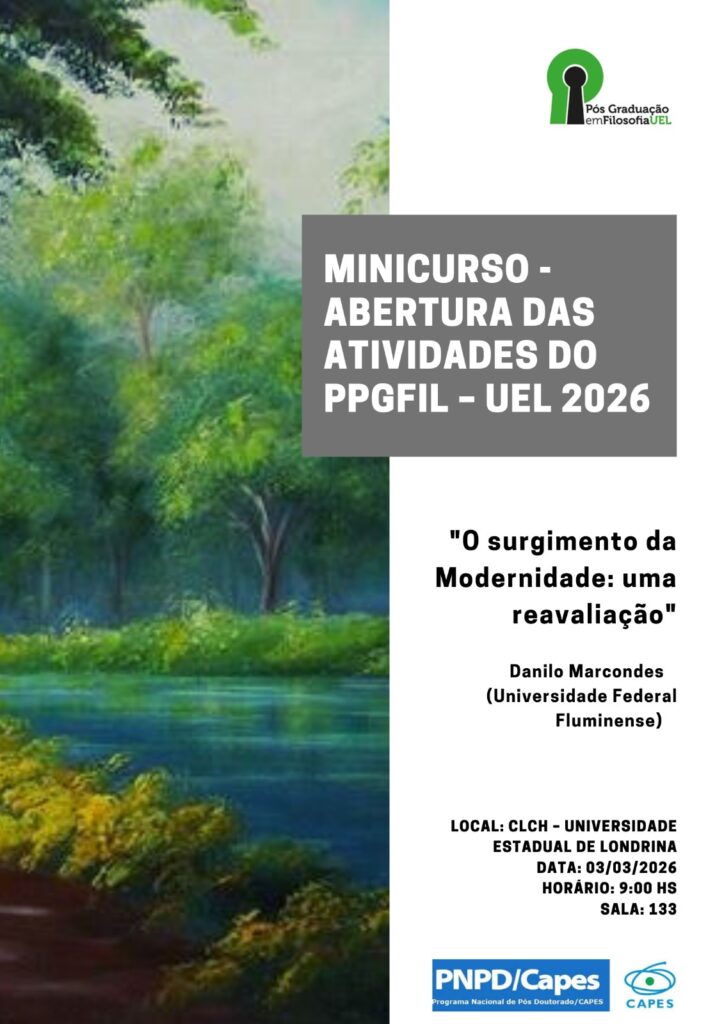 A Comissão Permanente de Bolsas do Programa de Pós-Graduação em Filosofia – PPGFIL, torna pública a chamada para bolsa de estudos CAPES/DS, por 12 meses, para discente(s) mais produtivo(s) nos anos de 2023, 2024 e 2025 do curso de Doutorado do PPGFIL/UEL.